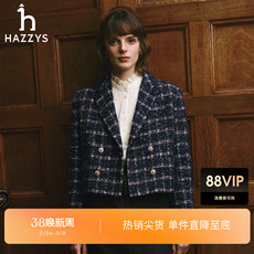 【商场同款】Hazzys哈吉斯秋季女时尚短款大衣毛呢外套潮