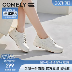 康莉真皮牛皮小白鞋女25年春季新款圆头商场同款简约女士休闲鞋子
