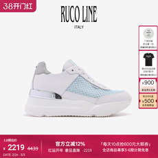 Ruco Line如卡莱牛皮运动休闲跑鞋网鞋女透气网面6CM厚底商场同款