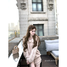 Thas9i九亿 美露波波 罗纹翻领波点拼接抹胸连衣裙&开衫外套套装