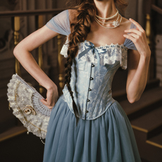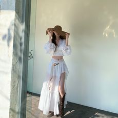 aaaaxbbb 雪顶银盐 抓襟花边套装减龄衬衫长袖上衣圆领短裙半身裙