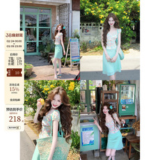 1套立减10元【夏日青桃】纯欲碎花蕾丝上衣短袖T恤半身裙套装女夏