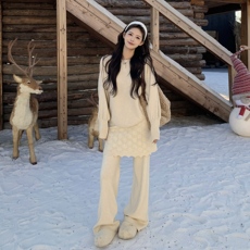 INNERFLOW冬季短款灰外套+白灰波点吊带+波点长裤家居感休闲套装