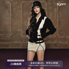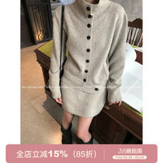 新中式立领撞色两件套女冬秋季长袖盘扣短款外套高开叉半身裙套装