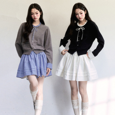 甜水仙 薄纱樱 定制蝴蝶结棉感微透双色衬衫半裙荷叶小飞袖套装女