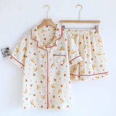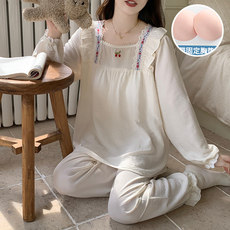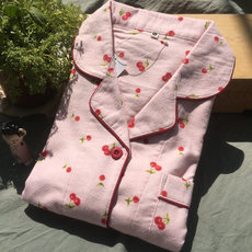 日系春秋女士纯棉斜纹磨毛绒布长袖睡衣套装可爱樱桃ins风家居服