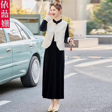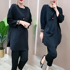 恩狐中老年时尚宽松休闲运动套装妈妈装长袖开衫拉链翻领三件套