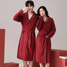 思馨坊情侣睡袍春秋季女结婚新婚晨袍浴袍红色男士睡衣家居服套装