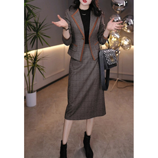 法式通勤甜酷风格纹半身长裙搭配米白色棉服女学生氛围感两件套装