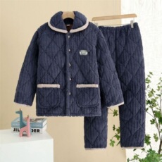 美标三层加厚保暖夹棉纯棉睡衣套装男士秋冬全棉质简约休闲家居服