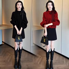 针织衫两件套装女秋冬设计感百搭显瘦毛衣+高腰半身裙套装配腰带