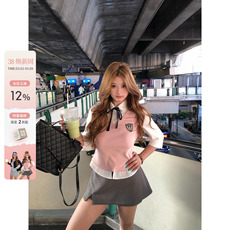 你的鱼 伯克利学院 韩系微胖mm春夏假两件学院感短袖上衣半裙套装