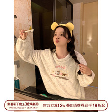 馨帮帮Homedress 秋冬季卡通珊瑚绒睡衣女宽松圆领加厚家居服套装