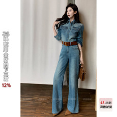 落落狷介一整套搭配秋装韩系早秋chic套装牛仔套装裤两件套阔腿裤