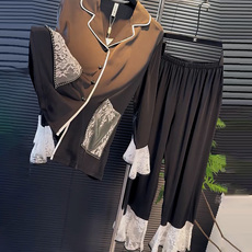 黑色西装领开衫喇叭袖口宽松家居套装女2026春季新款柔软舒适睡衣