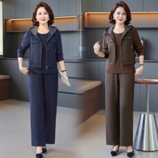 妈妈秋装休闲马夹外套运动三件套2026新款中老年女装洋气时髦套装