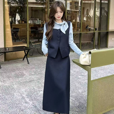 商场同款GF-81017休闲马甲两件套裤女显瘦毛呢阔腿裤套装2026春