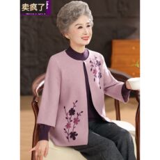 中老年妈妈秋装针织外套女端庄大气套装老年人上衣奶奶春秋两件套