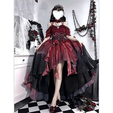 红色花嫁礼服lolita连衣裙女新年套装洛丽塔重工拖尾蓬蓬公主裙