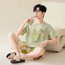 新款夏季纯棉短袖短裤睡衣男条纹简约薄款休闲可外穿家居服套装
