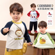 男童长袖T恤春秋款卡通印花撞色纯棉宝宝打底衫25秋中小童T恤宽松