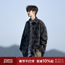 秋冬新款格子外套男士宽松连帽休闲棉夹克青少年学生加棉加厚上衣