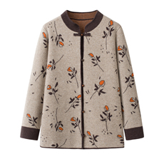 秋冬新款中老年女妈妈装100%纯羊毛国风立领双提提花加厚盘扣外套