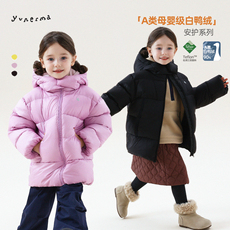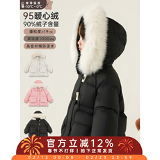 女童羽绒服中长款过膝加厚男童洋气中小童宝宝三防外套90白鸭绒冬