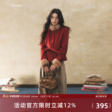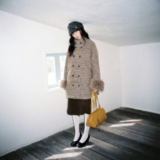 7Shiftin 原创设计双色系带毛领拼毛呢外套冬季收腰显瘦气质上衣