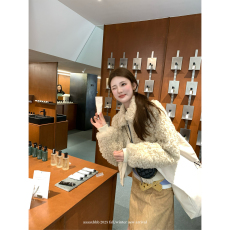 aaaaxbbb 新西兰半岛 奶白色环保皮草短外套韩系保暖皮毛一体上衣