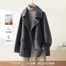 牦牛绒经典黑立领双面羊毛大衣女短款秋冬新款一粒扣简约毛呢外套