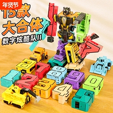 加大儿童数字变形男孩金刚益智拼装汽车玩具积木男童字母机器人