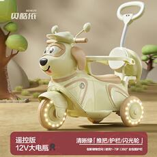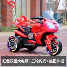 高档儿童电动托车宝三轮摩车男电女孩宝车小孩可坐人充双人遥控玩