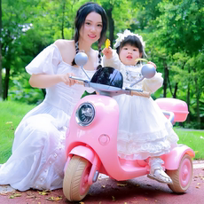 儿童电动车摩托车双驱男女宝宝玩具车三轮车可坐大人双人充电大号