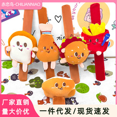 可爱汉堡薯条毛绒玩偶儿童啪啪圈吐司面包装饰品手环玩具批发