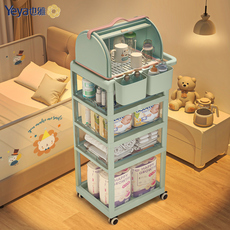 也雅婴儿喂养台收纳柜宝宝用品置物架卧室床头落地储物架收纳推车