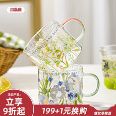 高硼硅玻璃杯儿童女士透明卡通杯子喝水家用咖啡杯带盖水杯马克杯