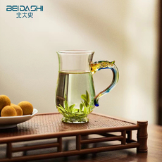 北大史绿茶专用玻璃茶杯高硼硅耐热龙把水杯高颜值带把透明泡茶杯