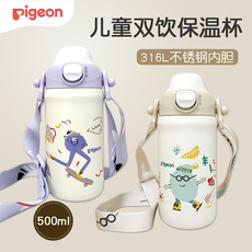 贝亲儿童保温杯500ml宝宝吸管水杯直饮水壶双饮口316不锈钢幼儿园
