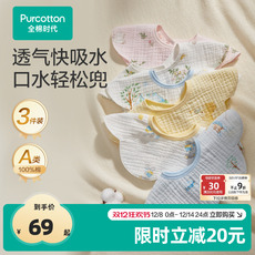 【3件装】A类春夏纯棉纱布围嘴新生儿围兜卡通柔软婴儿全棉口水巾