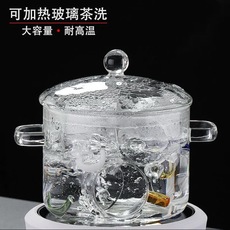 玻璃茶洗缸带盖消毒锅大号洗茶杯器皿可加热耐高温煮茶杯茶具配件