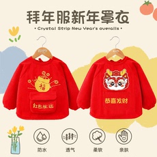 新年拜年红色国风宝宝罩衣过年春节婴儿童吃饭围兜反穿衣防水防脏