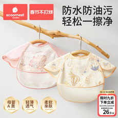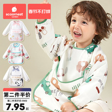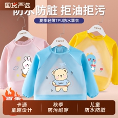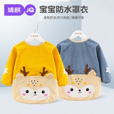 嫚熙宝宝吃饭罩衣儿童宝宝秋款防脏防水围兜反穿衣辅食饭兜幼儿园