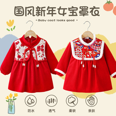 新年罩衣女宝宝新中式国风拜年服儿童外穿反穿衣防水防脏婴儿过年