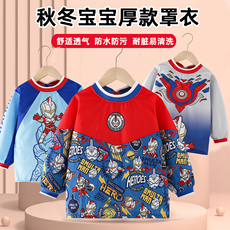 宝宝罩衣秋冬新款男童长袖围裙防水防脏护衣婴儿吃饭围兜衣反穿衣