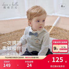 戴维贝拉新生儿连体衣春季纯棉宝宝婴儿衣服少爷百天周岁男宝礼服