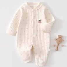 春季夹棉婴儿连体衣纯棉保暖男女宝宝爬服小月龄薄棉春装打底衣春