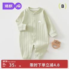 婧麒婴儿连体衣春秋款纯棉哈衣小月龄男宝宝打底对开秋季a类衣服