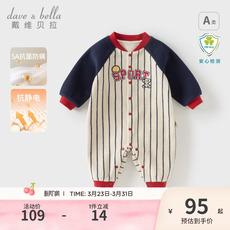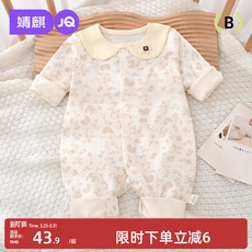 婧麒婴儿连体衣春秋季纯棉宝宝衣服新生儿四季款翻领对开哈衣爬服