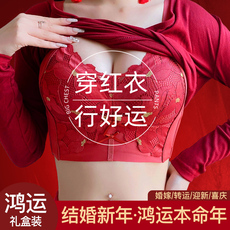 龙本命年红色内衣女结婚新娘套装大胸显小收副乳防下垂大码文胸罩